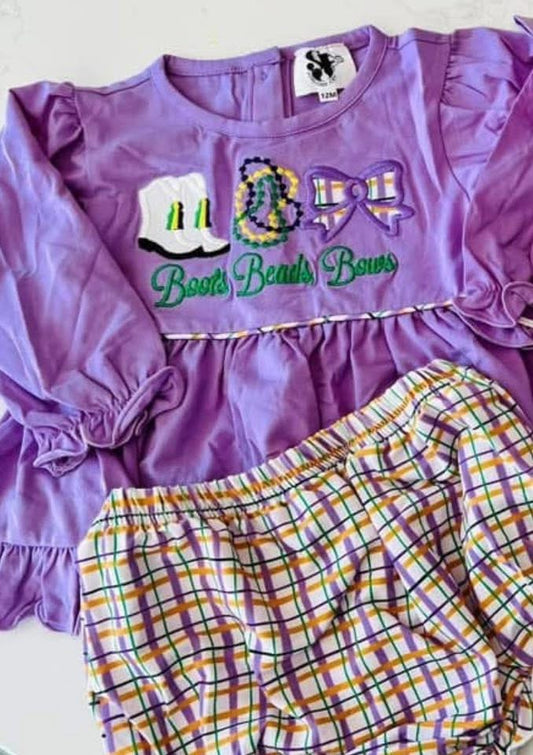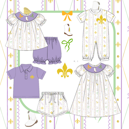 Mardi Gras Critters French Knot Romper